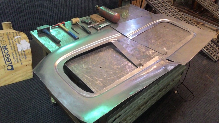Тем временем Вадим вырезал старую рамку и вваривал в салон крест из профилей, поскольку рамка это силовой элемент и без него крыша начинает шататься. Выставил крышу по размерам.