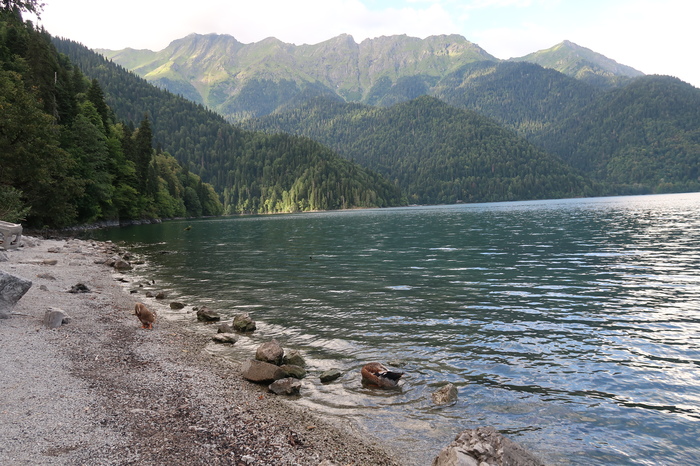 Начнем сразу с Рицы. За последних 6 лет, которые прошли с момента моего последнего посещения этой жемчужины Абхазии, реальных изменений я не заметил. Стало немного цивильней, появились мусорки, инфостенды, озеро полностью захватили катамараны. При чем ценник на них по нашим меркам, просто конский — 500 руб. за полчаса! В принципе, все хотят кушать, кто то много, кто-то мало, но все! Ну а в остальном, старое озеро все так же прекрасно и грациозно и никакой супер-сервис местного населения его красоты испортить не сможет!