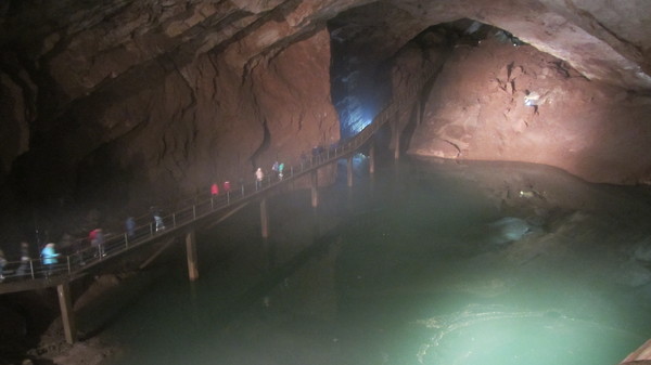 Происходит всё так- сначала вы садитесь поезд (ЭП563 Рижского вагоностроительного завода) он везёт вас до начала пещер, высаживаетесь идёте через пещеры, в конце маршрута садитесь на поезд и едете обратно. Много фоток с пещеры выкладывать не буду, я хоть и знаю что такое выдержка на фотоаппарате но сделать приемлемые снимки на ходу и без штатива крайне сложно.