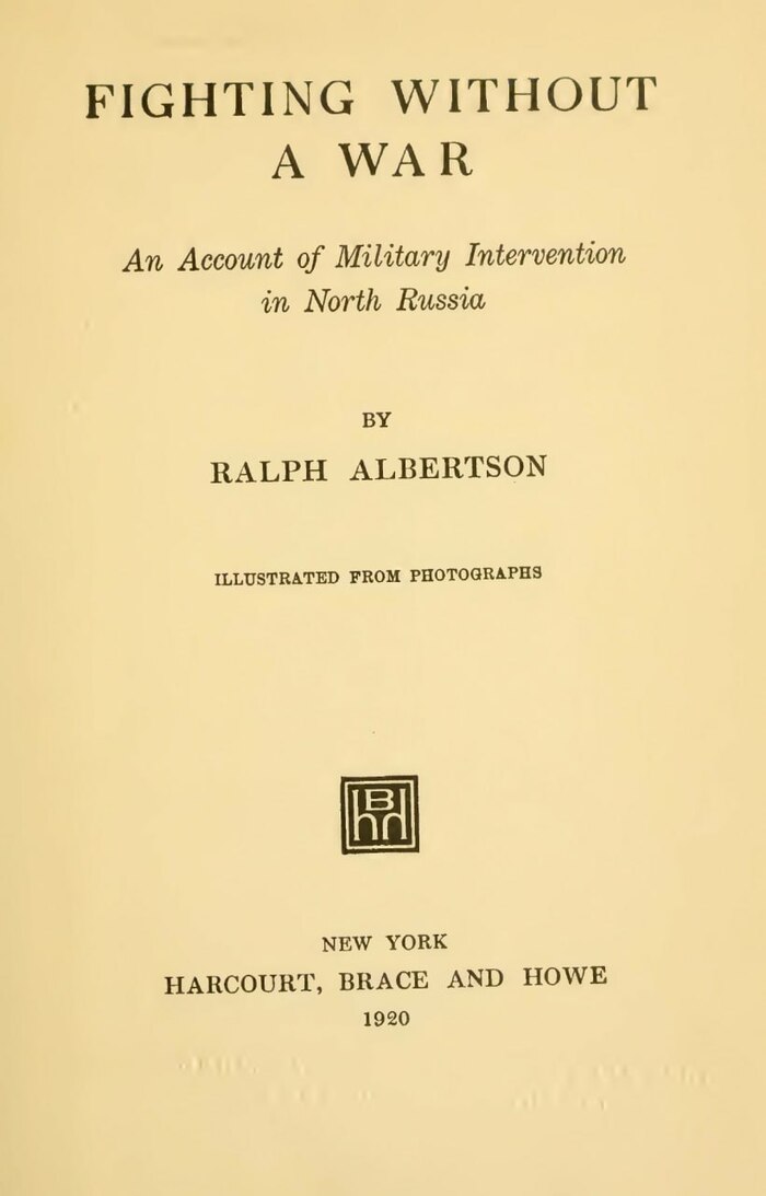 Цитаты – по недавнему переводному русскому изданию: Ральф Альбертсон. Бои без войны. Отчёт о военной интервенции на Севере России. – Чебоксары, 2024.