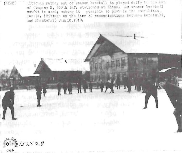 американские солдаты в селе Кица близ Шенкурска играют в бейсбол, 1919,
