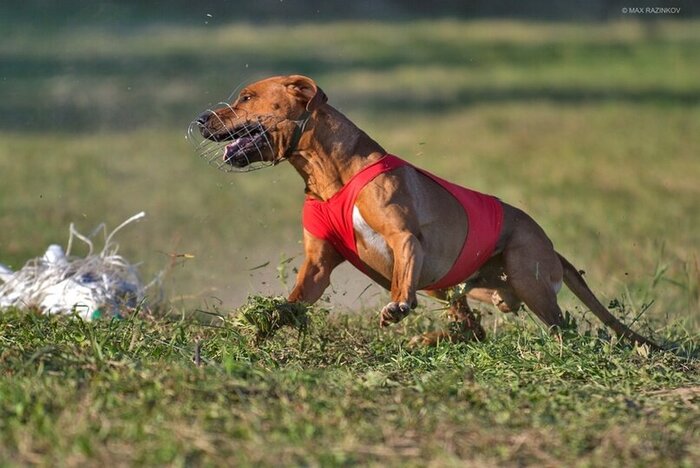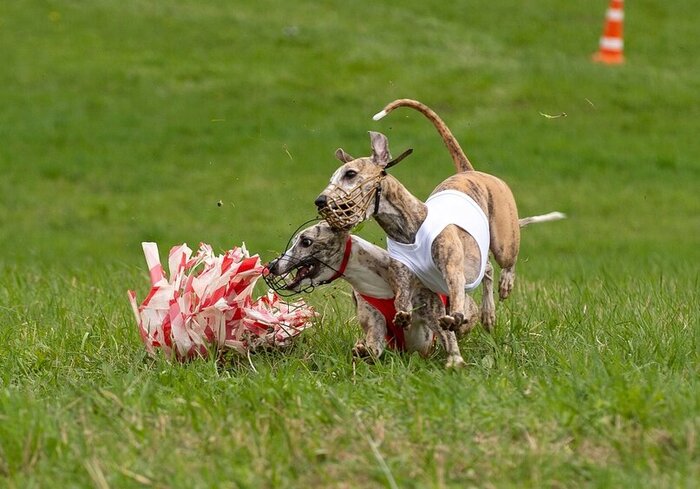 • Энтузиазм: проявляется в концентрированном внимании на приманке, фиксированном взгляде на ней. Собака постоянно и настойчиво преследует приманку, вынуждая оператора ускорять ее ход, чтобы не допустить преждевременной поимки; чисто перепрыгивает препятствия на своем пути, без каких-либо колебаний; возвращается к приманке, если та оказалась сзади; при поимке приманки на полной скорости хватает приманку в броске или пытается схватить приманку, даже если ею уже овладела собака-соперник.