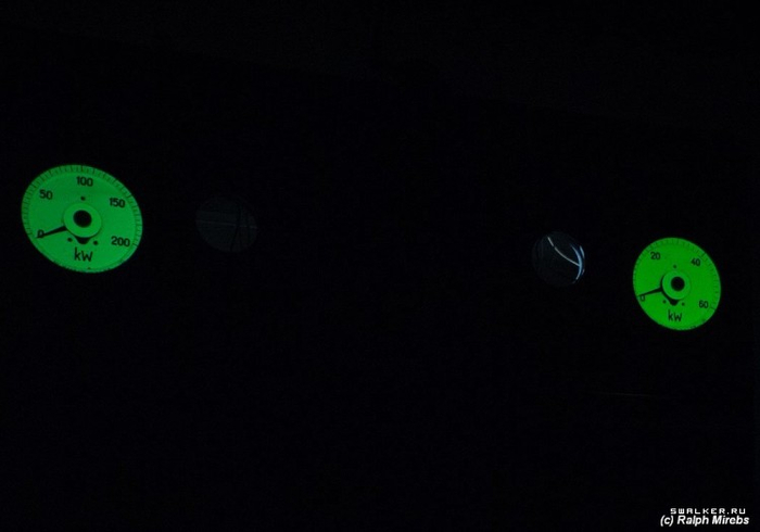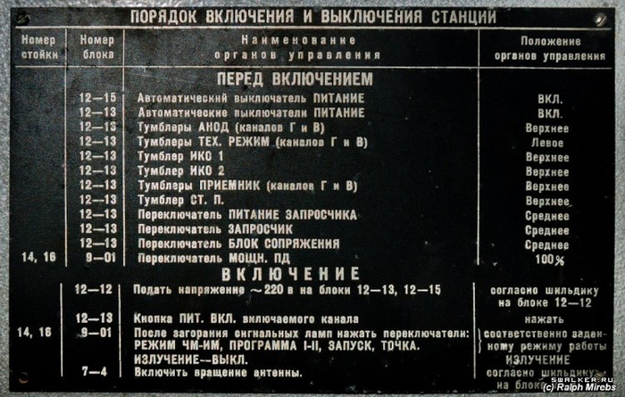 Позади экранов центральная стойка электропитания. В дежурном режиме станция потребляла не более 100 кВт по аппаратуре и 145 кВт на вращение антенны. В боевом режиме (включены оба канала) мощности возрастали в два раза.