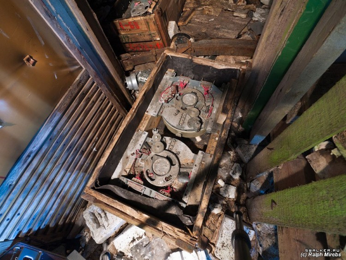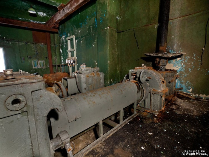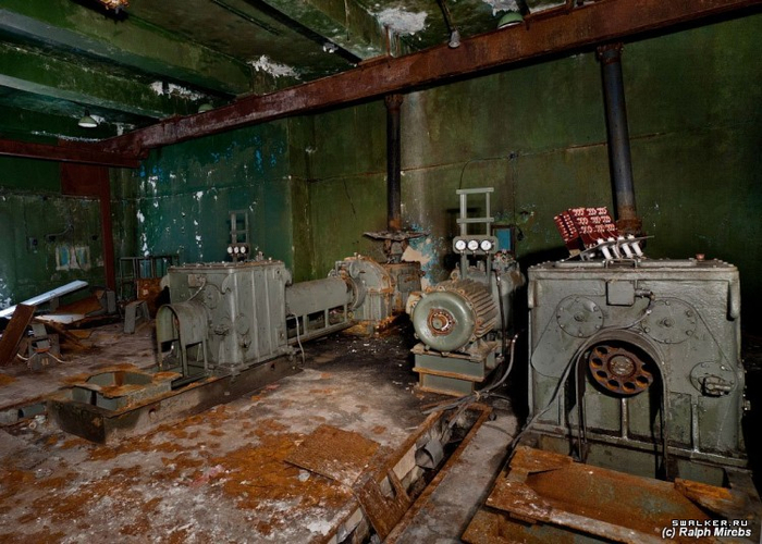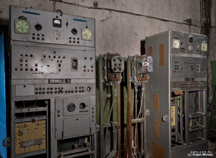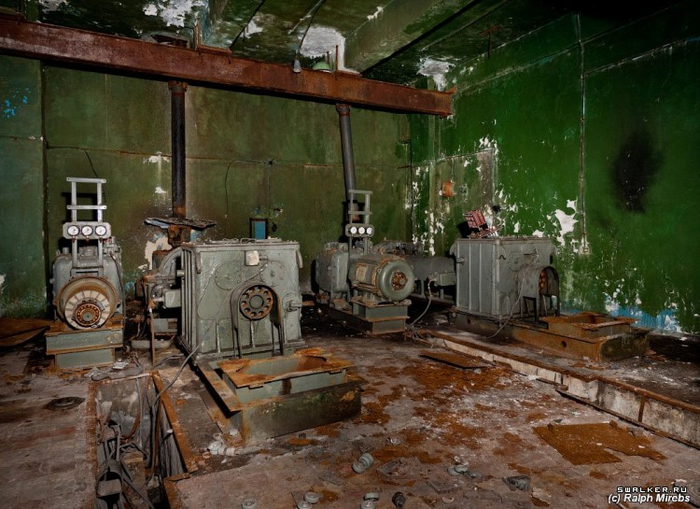 Механизмы привода поворота антенны. Также в этом зале находись преобразователи частоты напряжения в количестве пяти штук, но они не сохранились.