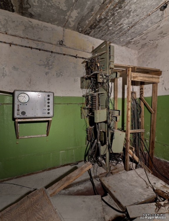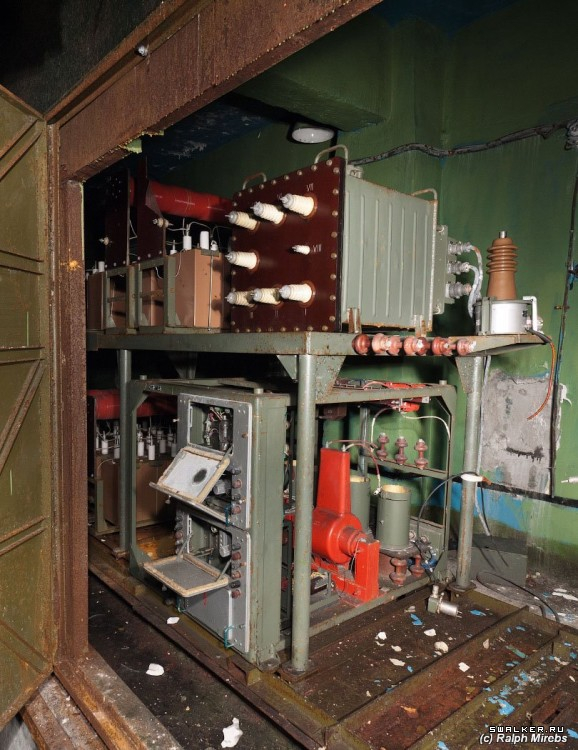 Захожу в сохранившееся кирпичное двухэтажное здание, попадая на выносной пост РЛС Лена П-70. Каждой из таких РЛС полагался такой пост, расположенный от неё в одном-двух километров и соединяющийся с ней по кабелям. Пост частично разграблен, но сохранность весьма неплохая.