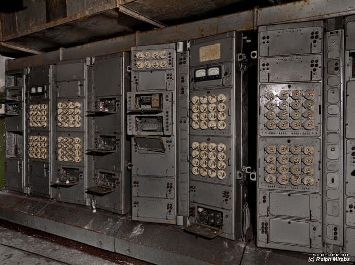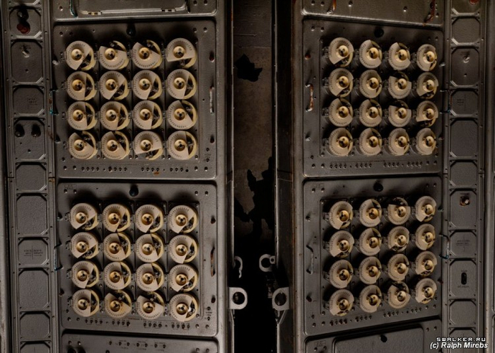 Самый большой зал второго этажа занимало оборудование передатчика. На фото стойки усилителя мощности в открытом и закрытом состоянии.