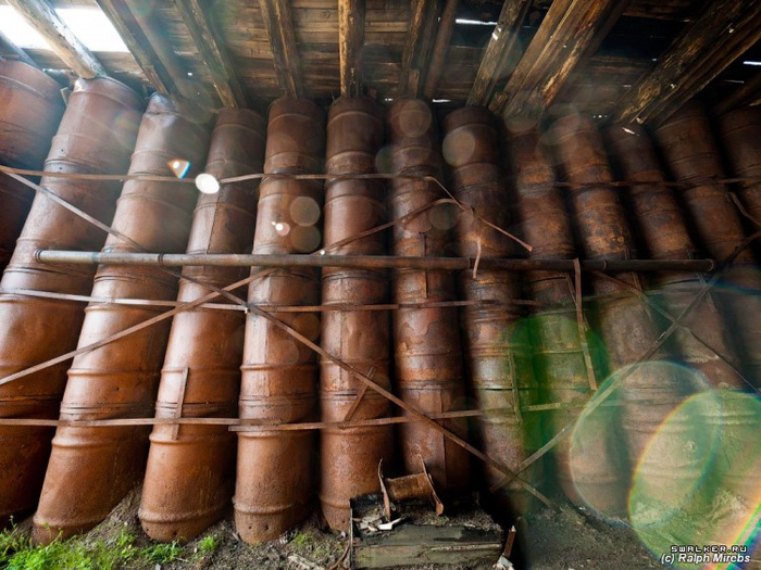 Иду дальше и попадаю в помещение со стенами из пустых бочек. Сверху оно засыпано землёй, подобно какому-нибудь бомбарю.