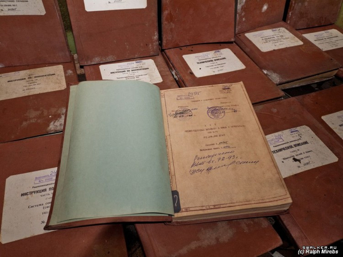 Библиотека. В ней находятся десятки некогда грифованых томов технического описания станции - схемы, фотографии, рисунки, описания. На многих из них стоит гриф даже не "для служебного пользования", а самое настоящее "секретно".