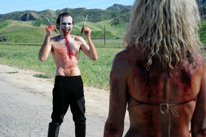 Особенно запоминающимся получился образ Doom-Head'а, в роли которого снялся преступно недооцененный Ричард Брейк - вот уж кому надо сыграть Джокера, если жуткая "Лечебница Аркхэм" когда-нибудь будет экранизирована! Но не отстают и другие хохмачи-душегубы из безумной игры на выживание, организованной на потеху богачам: ряженый под Гитлера карлик, громила в балетной пачке, нимфоманка, похожая на хоррор-версию Харли Квинн, два братца-насильника, чьи бензопилы постоянно окроплены кровью и облеплены кусками плоти... короче, скучать точно не придется!