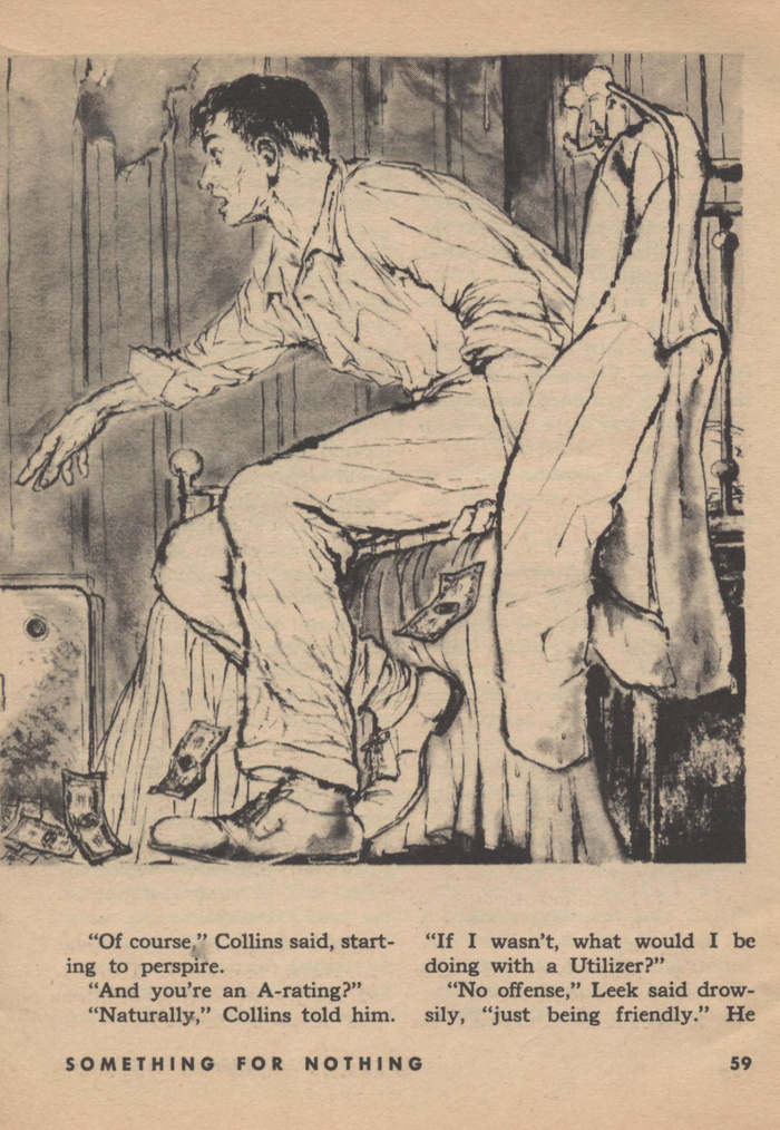 Выпуск журнала «Galaxy Science Fiction» от июня 1954 года, в котором впервые был опубликован рассказ Роберта Шекли «Кое-что задаром» (в ориг. «Something for Nothing»)