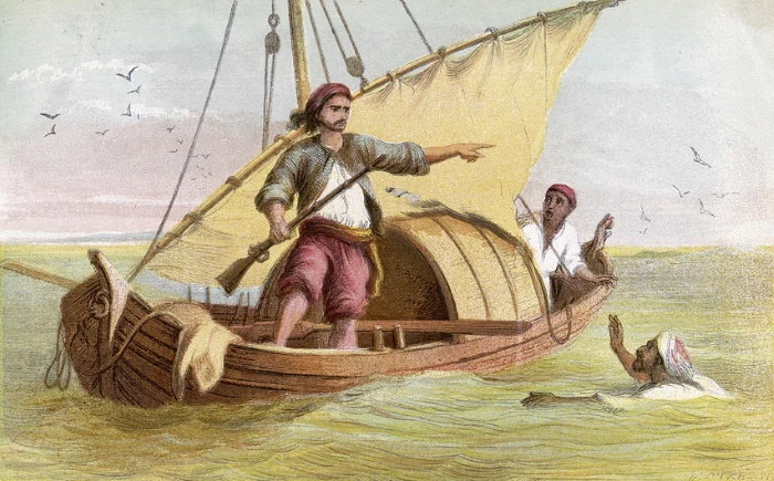 Крузо собирался соучаствовать в большом историческом преступлении. Его толкнула не нужда – в первой главе подчёркивается это. Им движет жажда наживы и только немного – дух авантюризма. Самые быстрые деньги в то время были самыми грязными. И уже в семнадцатом веке были люди, которые об этом говорили – священники и миряне-гуманисты, хотя обширным движение против работорговли и рабовладения стало только век спустя.