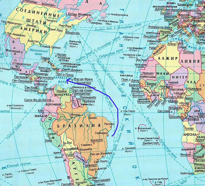 Недавно перечитывал книжку Робинзон Крузо, и решил заморочиться, сделать карту где он побывал.