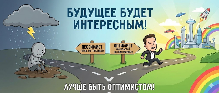 Маск: Лучше ошибиться в сторону оптимизма, чем быть правым пессимистом. Качество жизни будет выше.