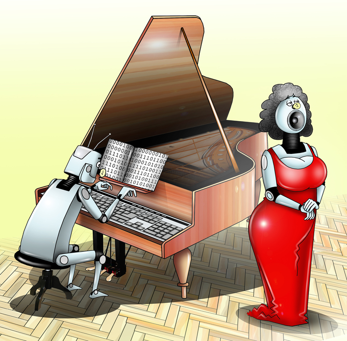 [моё] Сергей Корсун Карикатура Photoshop Робот Рояль Музыка Пение