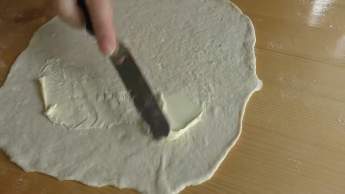 Свернуть так, чтобы масло было внутри, хорошо вымесить тесто.