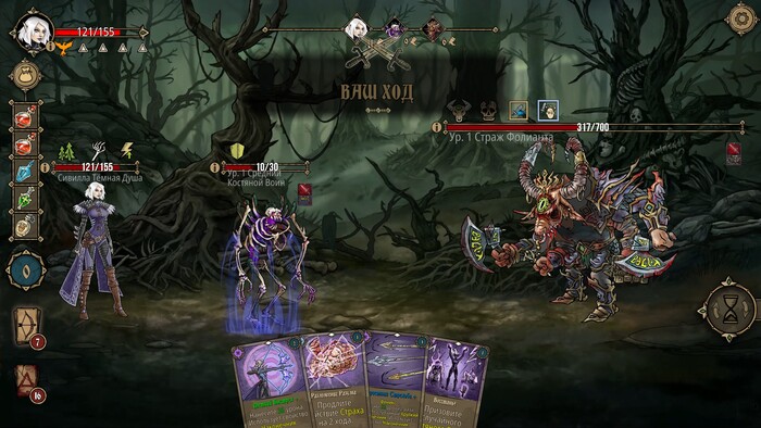 И, собственно говоря, боёвка строится на умелом балансировании колоды под каждого героя, обладающего уникальными картами и разными способами прокачки.