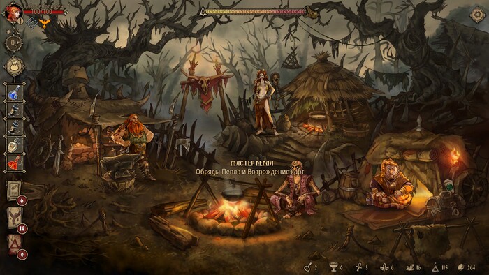 Также в нашем лагере есть несколько полезных неписей: мастер пепла, знахарка, торговец и кузнец. А, ну и ещё есть Леди Смерть.