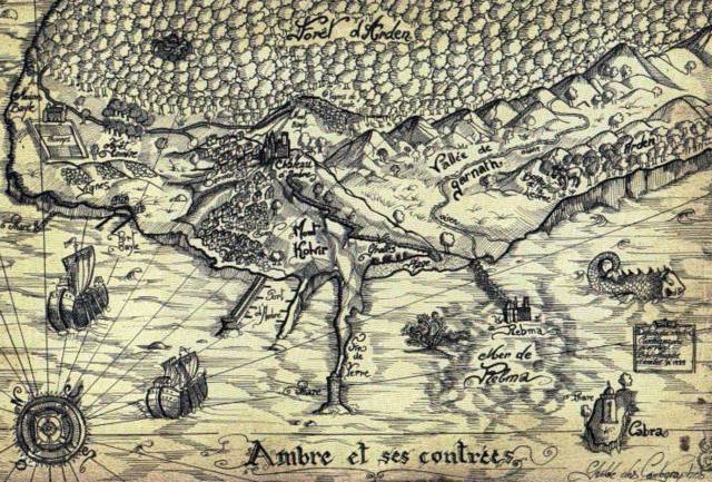 Привычный фантастический мир предполагает наличие некой карты или схемы, или иного наглядного отображения географического положения. В данном случае ничего этого нет, поскольку мир Амбера — не только и не столько континент, планета или звездная система, сколько целое мироздание, философская идея, которую ни в каком атласе не обрисуешь.