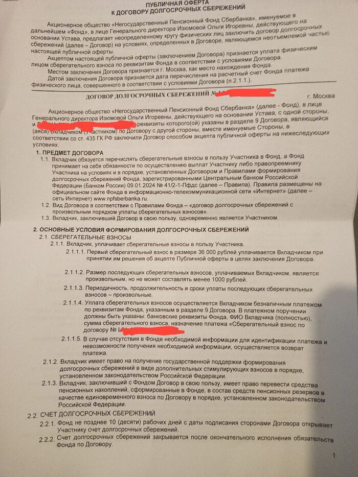 Мама (пенсионерка) открыла месяц назад долгосрочные сбережения в Сбере и положила туда 36тыс руб. В Сбере сотрудники говорят что через год можно забрать 72тыс руб.я как то не верю в такую благотворительность от государства и Сбера но договор понять не могу.