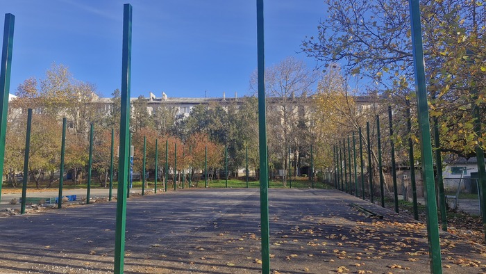 Двор у нас огромный, прямо очень, окружён шестью многоэтажками, но внутри двора была только площадка ГТО, одно баскетбольное кольцо, маленькая детская огороженная площадка и два заброшенных поля: баскетбольное и футбольное.