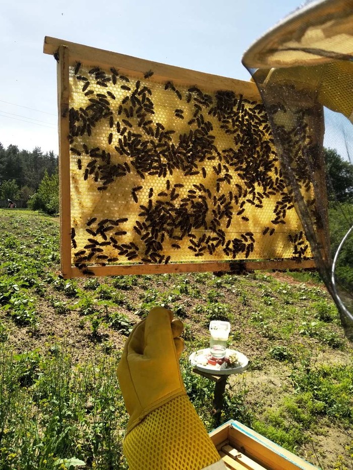 Ждем после этого немного пока пчелы усядутся и переносим их в пчельник. Кто-то сразу ссыпает в новый улей. Главное не проспать, так как рои втораки и поройки быстро слетают с места привоя. Нужно не упустить момент!
