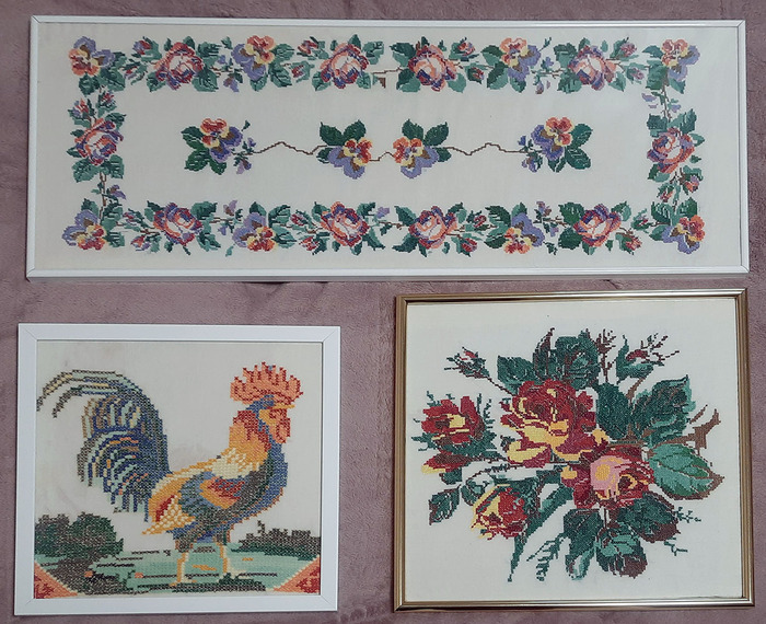 Летом в деревне тетя показала мне несколько старинных вышивок, доставшихся ей в наследство, сказала, что хочет их вставить в рамки и повесить на стену. Память.