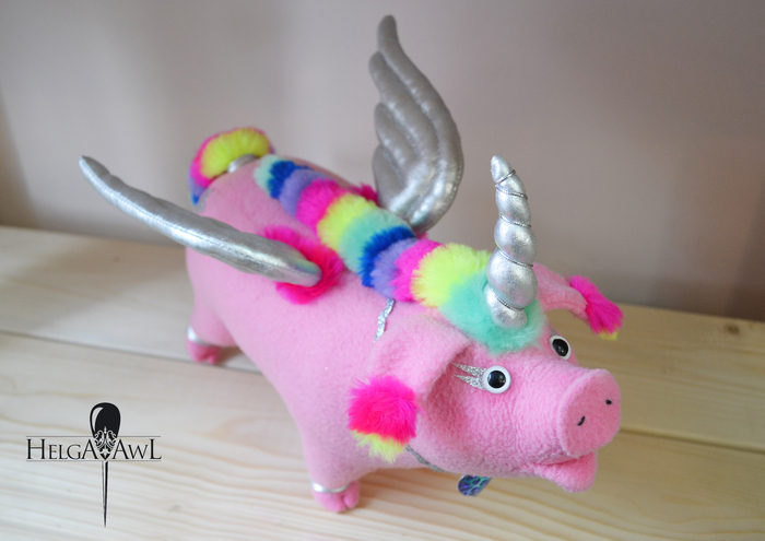 Крепления под крылья скрыты, вставлен рог. Перекрашен корпус, перепрошиты грива, хвост и ресницы. Последнее фото - до работы.