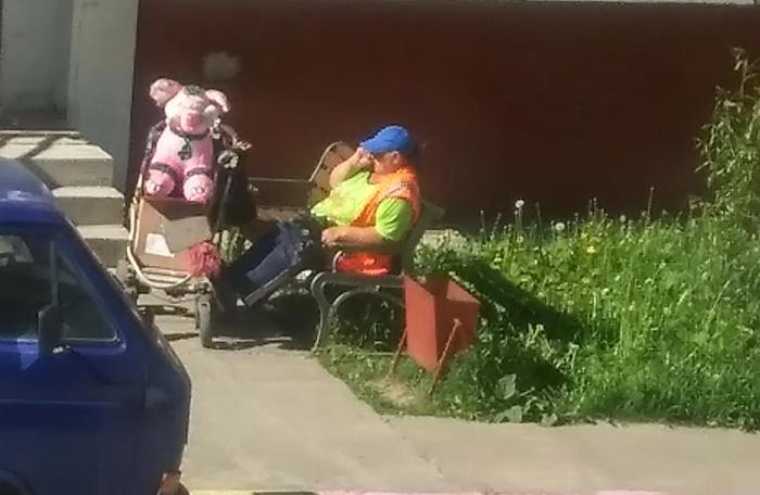 Везде творится беспредел и какая то вакханалия, а у нас дворники выгуливают розового слона. За качество извиняюсь, фоткал на телефон с балкона.