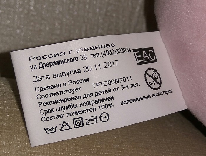 Заинтересовавшись составом набивки посмотрел на лейбл.