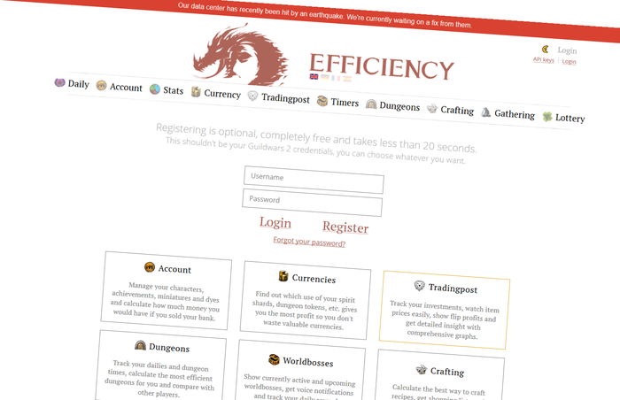 У gw2efficiency.com покосило сайт, из-за землетрясения