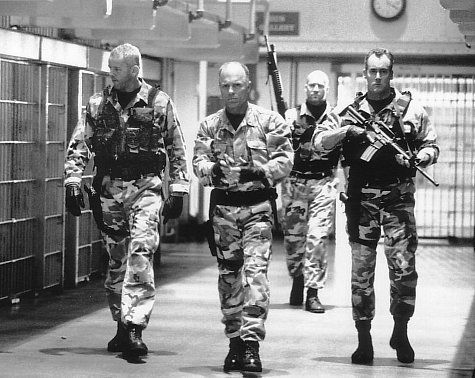 Тем временем, банда террористов - морпехов во главе с неким Стайтсом захватывает бывшую тюрьму Алькатрас и берет в заложники группу туристов. В ходе невероятно мощного сюжетного твиста выясняется, что в 1960-е годы там было спрятано химическое оружие для защиты от коммунистов про которое судя по всему все забыли (ну, сами понимаете, обычная история). Отец Стайтса когда-то работал с этим оружием и умер от рака. После того, как правительство не стало выплачивать его семье компенсацию, отказавшись признать существование химического оружия, сын решил захватить Алькатрас и потребовать выкуп, угрожая обстрелять Сан-Франциско снарядами с ядовитым газом из самодельных мортир, смонтированных им на острове. Стайтс в этой версии не имеет ничего общего с генералом Хаммелом – это достаточно безликий злодей, который с легкостью убивает как заложников, так и своих сослуживцев, лишь бы получить свои деньги.