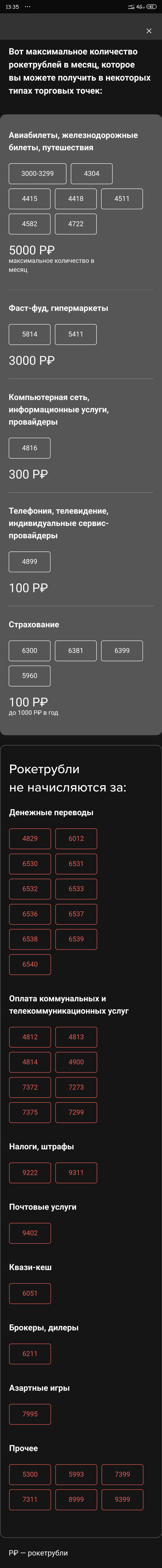 Вот засада, в серой колонке они должны мне по этому МСС коду до 100руб. А в черном красными цифрами написано, что не должны.