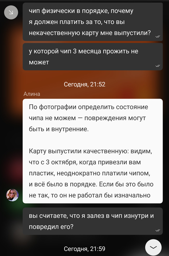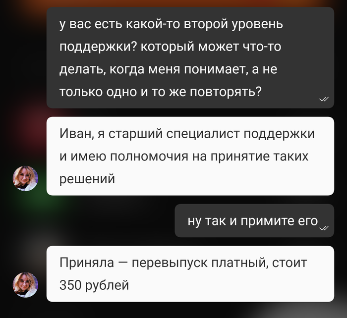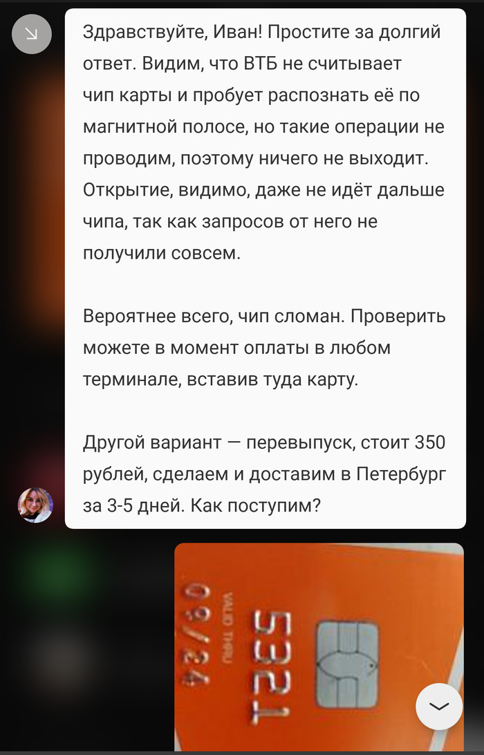 Карту выпустили в конце сентября. Мне так то не жалко 350р на перевыпуск, но имхо это свинство. Все свои аргументы высказал старшему специалисту Алине, но она отвечает только на те аргументы, на которые хочет, и то невпопад. Решение она уже приняла.