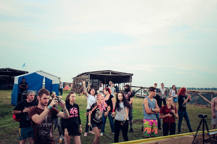 Бабки сосут - не успеешь заехать: автобус от ж/д станции Конаковский мох до территории (там не больше 2 км) 150 рэ. Парковки за отдельную плату. Досмотр тщательный, не вокзальный - прощупывают, открывают, нюхают; правила соблюли (любые напитки, продукты в непрозрачной таре, железо - нет), проблем не возникло, за минуту прошли со средними сумками. Зашли - предоставлены сами себе, бегай-разбирайся-ищи, по первому разу напряжно. Окей, дошли до палаточного городка (Москва) - нужна палатка, спальники. Средняя, трехместная, метра три по сторонам - 4к аренда за все время; мешки по 1к; и залог 2к (это еще навстречу пошли... лучше свое возить; альтернативный вариант с палаточной гостиницей тоже доверия не вызывает; кстати, палатки с мешками с собой увезли, утром шестого арендаторы смылись). Куда ее ставить - твои проблемы, хаотичная "застройка" по всему городку; хорошо еще заехали за день, относительно быстро нашли. Пойти умыться - кранов десять на всех с холодной водой в постепенно углубляющейся трясине - слива нет, в землю; туалеты - обычные общественные пластмассовые, к концу первого дня некоторые почти под завязку (к чести, на следующий день поубавилось - следят). Такое дело, как душ - 300... У випов, говорят, баня за 10к; верю. Прачечная тоже только у них.