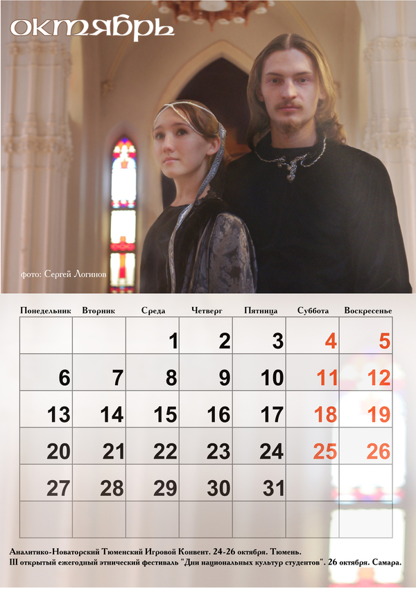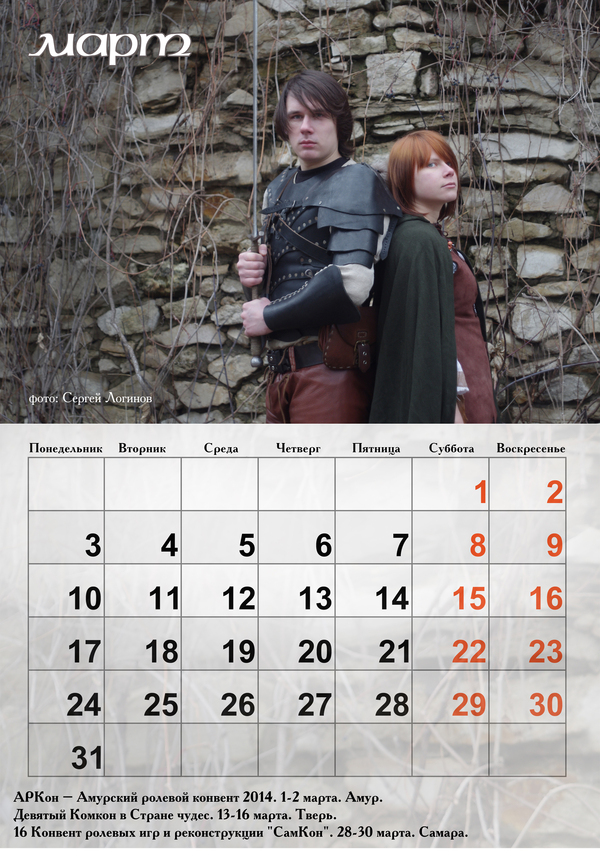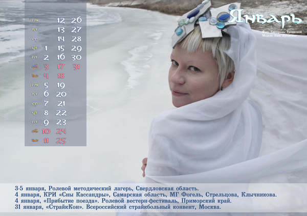 В этом календаре сняты обычные люди, составляющие костяк самарской ролевки. Очень старались снять красиво, но подбирали в модели не красавчиков, а двигателей сообщества.
