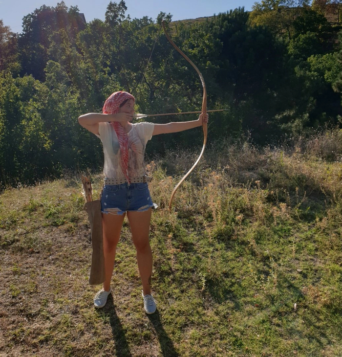 Поначалу просто общались, я подружилась с его компанией (там у меня две подруги есть), ездила к ним в город, он учил меня стрелять из лука. До сих пор обожаю стрелять и почти всегда лучником еду на игры.