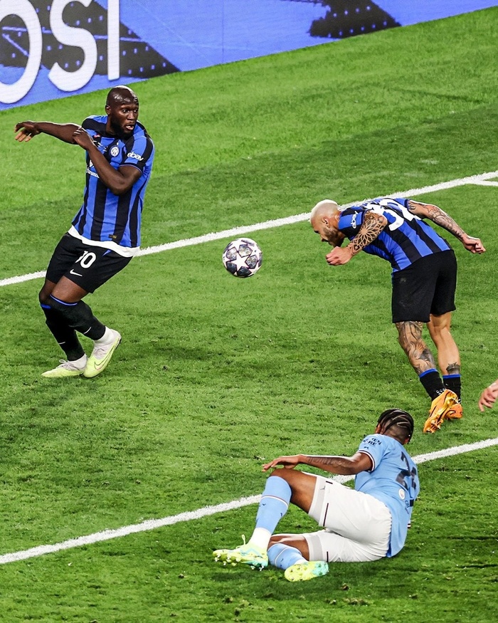 Интер в конце тайма создал великий момент. Скидка на Лукаку в центр вратарской, и Лукаку пробивает по центру головой с близкого расстояния. Эдерсон ногой, чудом отбивает мяч. В следующей атаке, Лукаку мажет удар. А уже в дополнительное время, Эдерсон своим сейвом дарит Манчестеру Сити кубок Лиги Чемпионов!!!