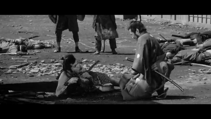 Стравливая между собой и тем самым сокращая ряды ничего не подозревающих банд, ронин Сандзюро постепенно достигает своей цели. Однако, обе банды все еще на ногах. Наконец, самурай доходит до узлового момента – “Cherchez la femme”.