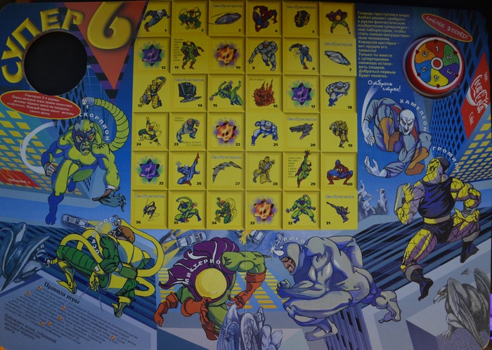 Настолка представленная здесь, выпущена в 2000г, технически это уже не 90-е, но по факту аналогичная игра из тех, что выходили ранее. И судя по всему, над оформлением конкретной этой, трудились уже явно "наши" мастера, как говорится на лице все написано (у персонажей).