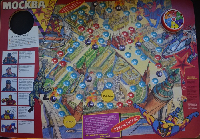 Есть даже небольшой взгляд на будущее, в виде игрового поля "Москва 2005" с Железным-человеком в вертолете, пролетающим над Красной площадью.