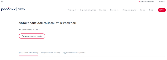 Автокредит для самозанятых от Росбанк — самая большая сумма займа.