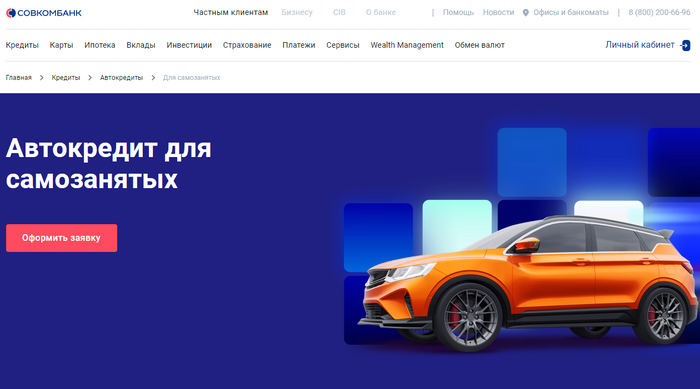 Автокредит для самозанятых от Совкомбанк — самый высокий процент одобрения банка.