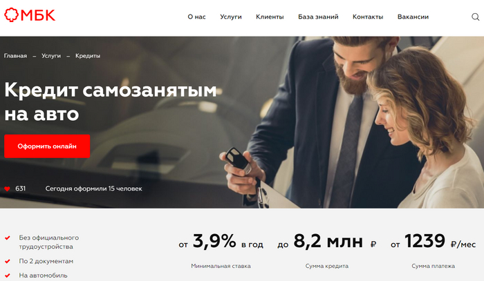Кредит самозанятым на авто от МБК — самая низкая процентная ставка.