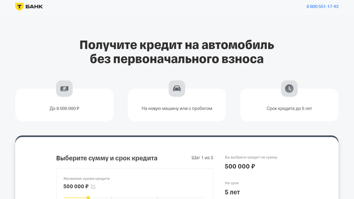 Автокредит от Т-Банк — онлайн-оформление за 2 минуты без первоначального взноса, нужен только паспорт РФ.