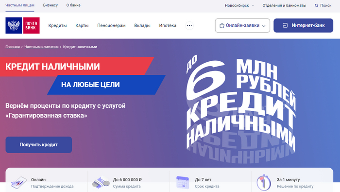 Кредит на любые цели от Почта Банк — самое быстрое решение банка.