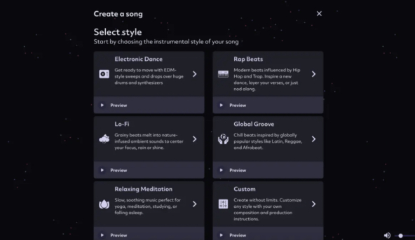 Этот ИИ-композитор сгенерирует трек по любому англоязычному запросу или музыкальному референсу, который можно разбавить настройками. Среди них — продолжительность, жанр, настроение композиции или даже активность под трек. Последнее означает возможность создать музыку для физической нагрузки, сна, медитации и так далее.