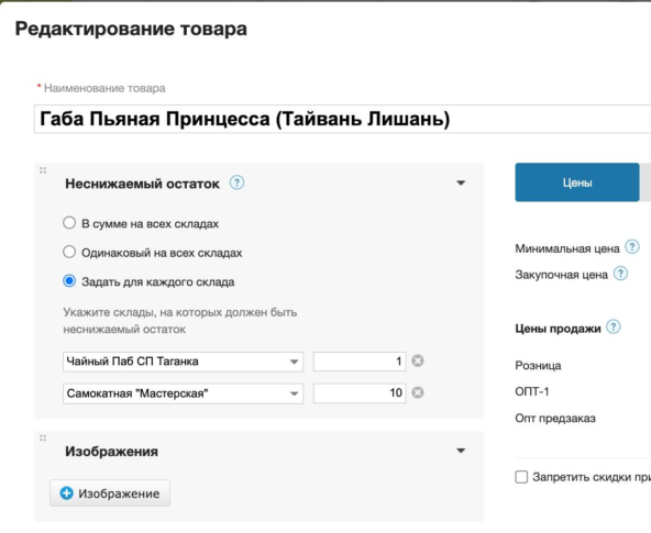 Чтобы хранить 300 позиций чая и посуды, арендовал дополнительный склад. Там держу основные запасы, а в магазин перемещаю минимум — аренда дорогая. В МоемСкладе настроил минимальные остатки.