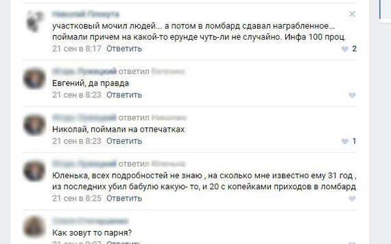 …Это расследование началось с социальной сети «ВКонтакте». Под новостью о том, что прошел первый тур конкурса на звание «Народный участковый», на одном из пабликов появился комментарий: почему в списке тот, что задержан и подозревается в убийствах? В обсуждениях появилась даже ссылка на страницу этого подозреваемого. Часть комментариев позже была «почищена».