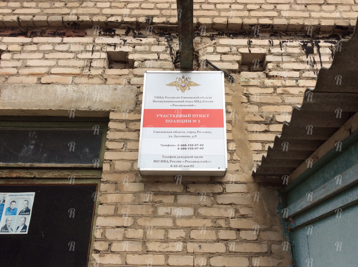 30 сентября, Рославль. Здание общежития, на нем — вывеска: участковый пункт полиции. Заходим внутрь, до жути в плохом состоянии коридоры. Поднимаемся по лестнице.