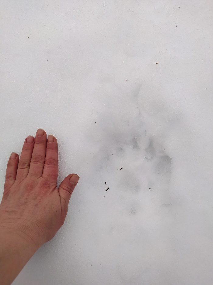 Петербурженка Анастасия Власова в Кировском районе Ленинградской области обнаружила следы крайне редкого для нашего региона зверя. Следы его передних лап очень похожи на медвежьи, только меньшего размера. На фотографии видна характерная для этого хищника прямая следовая дорожка. Это след росомахи, бесстрашного хищника, занесенного в Красную книгу Ленинградской области. Единичных особей в нашем регионе фиксируют лишь зимой, и только по следам. За всю историю в Ленинградской области росомаху удалось заснять лишь однажды зимой 2021 года. Это удалось сделать Сергею Смирнову, сотруднику природного парка Вепсский лес при объезде охраняемой территории на снегоходе. Поражает с какой легкостью хищник бежит по глубокому снегу. Через несколько недель у росомах ожидается появление потомства. Если обнаруженные следы оставила самка, то возможно, она пришла в эти места рожать.